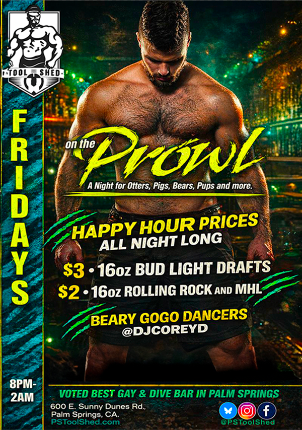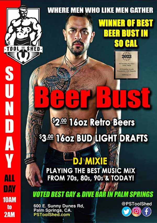 Located in the famed Warm Sands District since 1993, Tool Shed is the Original Leather + Levi Bar in Palm Springs!